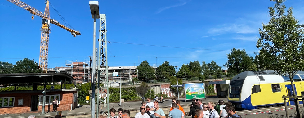 Per InterCity ging es in guten 3 Stunden von Harburg nach Düsseldorf. Für die Versorgung während der Fahrt war auch durch ein Starterpaket bestehend aus Kaltgetränken und verschiedenen Utensilien in Vereinsfarben bestens gesorgt. In der Bahn kam es dann zur großen Zimmerauslosung durch die Losfee Rafael Arias. So kam es zu einer bunten Durchmischung der Spieler der 1. und 2. Herren.